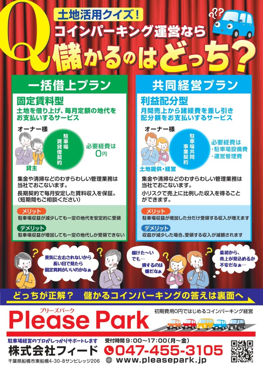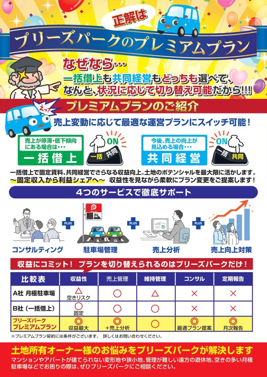 コインパーキング運営なら〝儲かるのはどっち?〟当社『プレミアムサービスプラン」チラシを作成しました。』